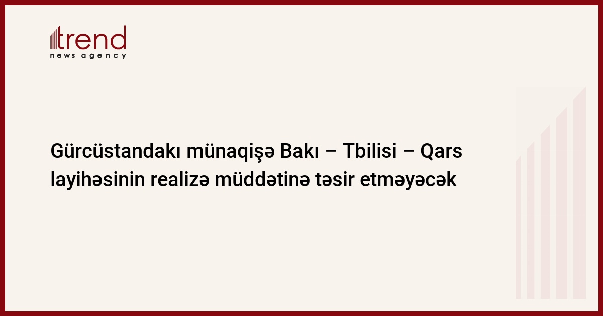 Azərbaycan, Bakı, 16 sentyabr/ Trend , müxbir E.İsmayılov/ "Gürcüstandakı münaqişə Bakı - Tbilisi - Qars dəmir yolu layihəsinin realizəsini ən azı yarım ay yubadıb", - Gürcüstanda dəmir yolu sahəsinin tikintisi layihəsinin kontraktoru "Azərinşaatservis"in meneceri Savaş Yenituran çərşənbə axşamı bildirib.