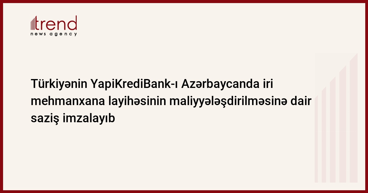Azərbaycan, Bakı, 22 sentyabr/ Trend , müxbir N.İsmayılova/ Türkiyənin YapiKreditBank-ı bazar ertəsi Azərbaycanın İSR Holding-i ilə Azərbaycanda Hilton mehmanxanasının tikintisi layihəsinin maliyyələşdirilməsi haqqında kredit sazişi imzalayıb,- Bankın yeni baş ofisinin binasının açılış mərasimində iştirak edən YapiKrediBank Azerbaijan-ın Baş direktoru Coşkun Bulaq bazar ertəsi bildirib.