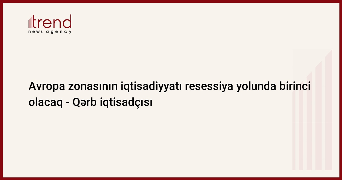 Azərbaycan, Bakı, 24 sentyabr / Trend , müxbir A.Bədəlova/ Avropa zonasının iqtisadiyyatı, ressesiya vəziyyətinə daxil olan dünyanın iri iqtisadiyyatı üzrə birinci olacaq, - Capital Economics Britaniya Konsaltinq şirkətini iqtisadi tədqiqatlar üzrə baş iqtisadçısı Conatan Loyens (Jonathan Loynes) hesab edir.