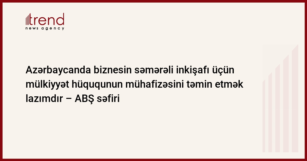 "Ölkədə rəqabətqabiliyyətli mühitin yaradılması da sahibkarlığın inkişafına təkan verə bilər", - deyə səfir bildirib.