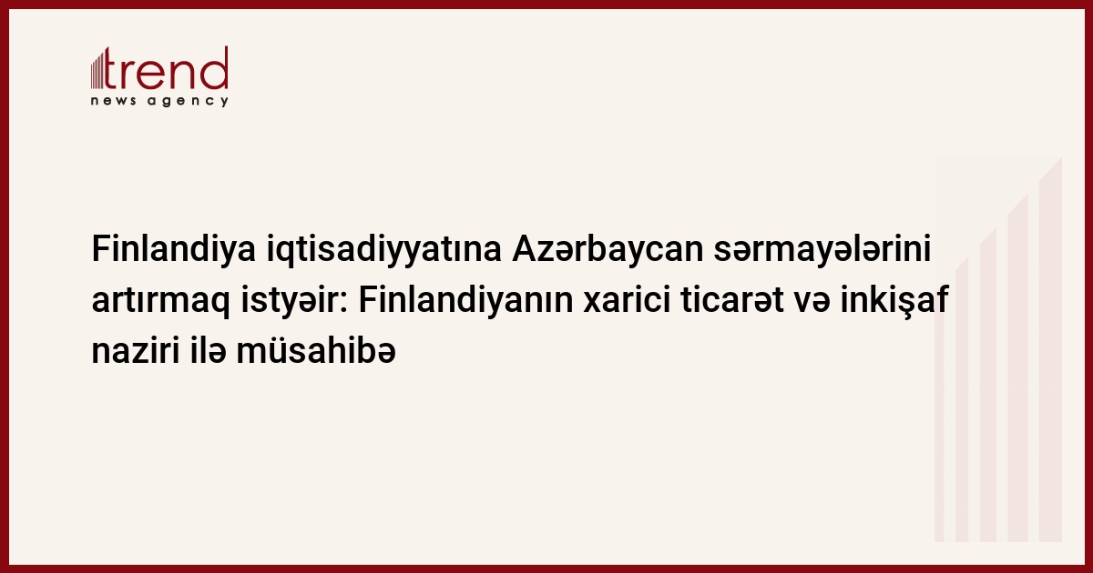 Finlandiyanın xarici ticarət və inkişaf naziri Paavo Vayuryunen (Paavo Vayrynen) ilə Trend -ın müsahibəsi onun oktyabrın 8 - də Bakıya səfəri ərəfəsində baş tutub.