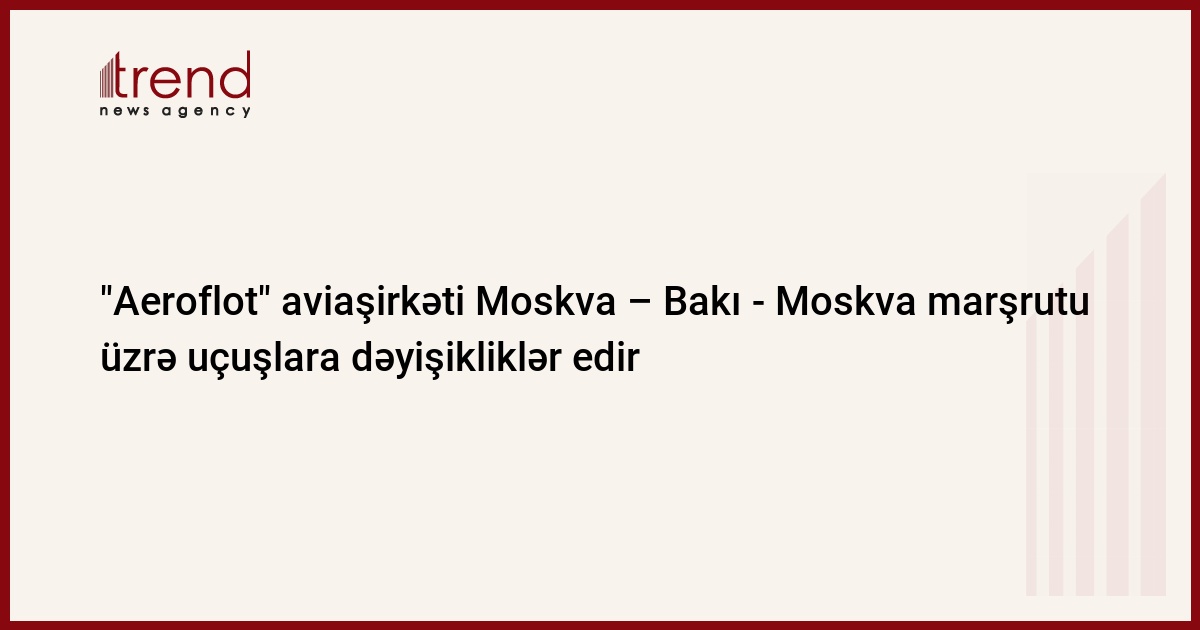 Azərbaycan, Bakı, 21 oktyabr/ Trend , müxbir E.İsmayılov/ Rusiyanın "Aeroflot" aviaşirkəti qış qrafikinə keçidlə əlaqədar, oktyabrın 26 - dan Moskva - Bakı - Moskva reyslərinin qrafikinə dəyişikliklər edir, - aviaşirkətdən çərşənbə axşamı bildiriblər.