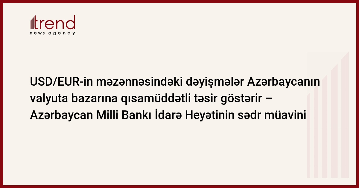"İnsanlar əmanətlərini hansı valyutada saxlamağı, hansı valyuta ilə sərmayə yatırmağı və sabah üçün hansı tədbirlər görməyi bilmirlər. Daxili bazarda sabitlik müşahidə olunduğu üçün Azərbaycanda belə problemlər yoxdur. Lakin qısamüddətli dövrdə USD/EUR valyuta cütlüyündəki dəyişmələr cüzi də olsa Azərbaycan bazarına təsir göstərir", - İdarə Heyəti sədrinin müavini bildirib.