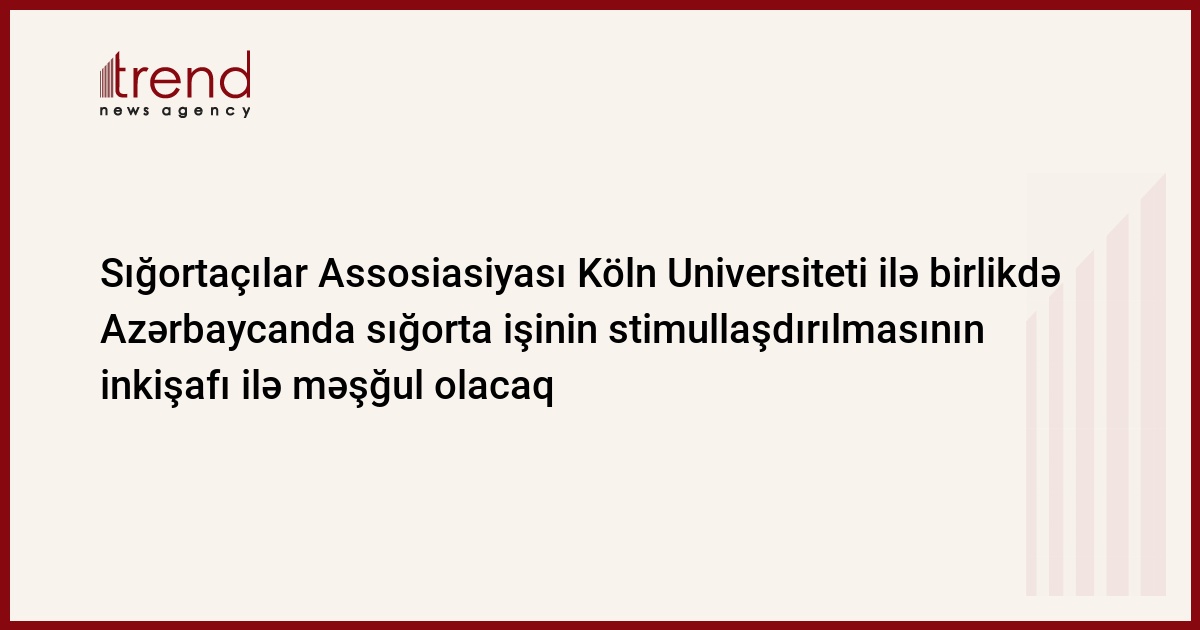 Azərbaycan, Bakı, 03 noyabr/ Trend , müxbir Ü.İsmayılova/ Azərbaycanın Sığortaçılar Assosiasiyası Köln Tətbiqi Elmlər İnstitutunun professoru Oskar Coiki ilə birlikdə ölkədə sığorta təhsilinin inkişafının stimullaşdırılması üzrə birgə iş aparacaq, - Assosiasiyanın icraçı direktoru Qafar Məcidov bazar ertəsi bildirib.
