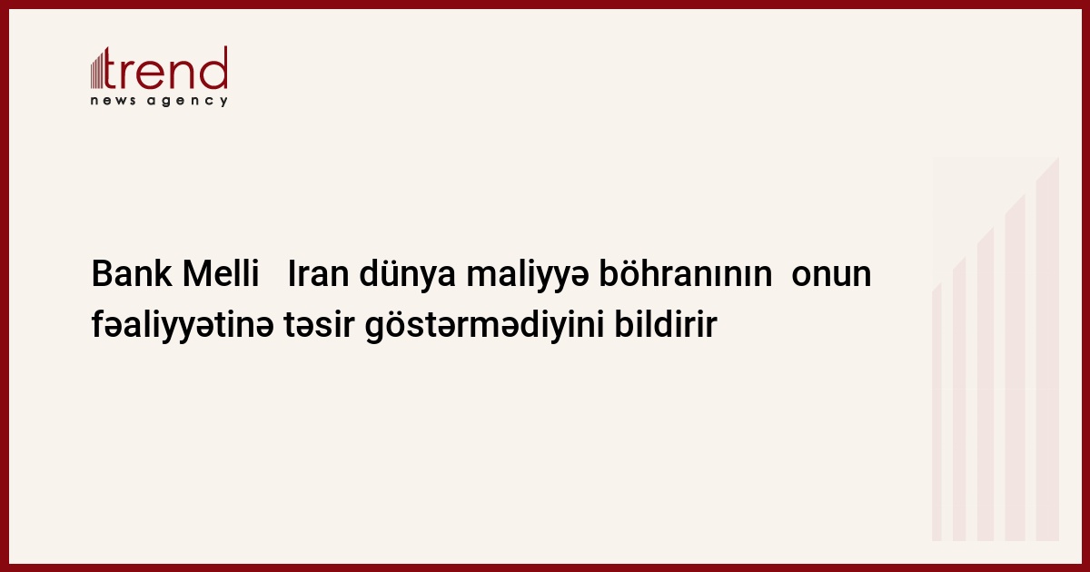 Azərbaycan, Bakı, 12 noyabr/ Trend , müxbir N.İsmayılova/ "Dünya maliyyə böhranı nə Bank Melli Iran-ın İrandakı baş ofisinin, nə də Bakı filialının fəaliyyətinə təsir göstərib" - Bankın Azərbaycan filialının sədr müavini Anar İbrahimov bildirib.