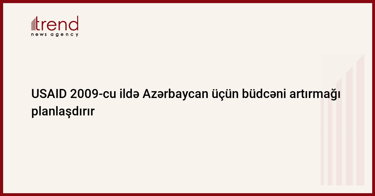 Azərbaycan, Bakı, 25 noyabr/ Trend , müxbir Ü.İsmayılova/ ABŞ-ın Beynəlxalq İnkişaf Agentliyi (USAID) 2009-cu ildə Azərbaycan üçün büdcənin artırılması imkanlarını nəzərdən keçirir. Bu barədə USAID missiyasının baş iqtisadçısı Pol Deyvis bildirib.