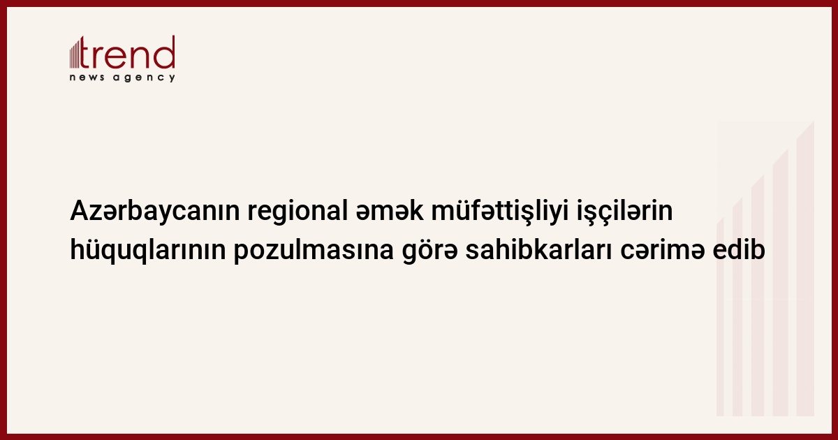 Regional Əmək Müfəttişliyi yanvar - oktyabrda Lənkəranda apardığı yoxlamalar zamanı işçilərin hüquqlarının pozulmasına dair 258 fakt aşkar edib, monitorinqin yekunları üzrə 235 işçi ilə əmək müqaviləsi bağlanılıb.