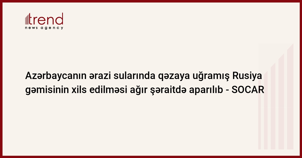 Azərbaycan, Bakı, 16 dekabr/ Trend / Xəzərin Azərbaycan sektorunda qəzaya uğramış Rusiyanın "Sarmat-1" gəmisinin xilas edilməsi ağır hava şəraitində aparılıb, - SOCAR-ın (Azərbaycanın Dövlət Neft Şirkəti) məlumatında deyilir.