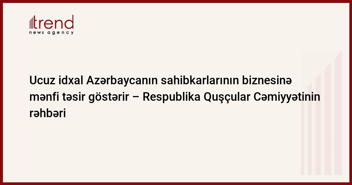 "Biz öz məhsulumuzu sata bilmirik. Belə ki, xaricdən ölkəyə böyük həcmdə ucuz quş məhsulları gətirilir. Əhalinin alıcılıq qabiliyyəti də azalıb", - Vəliyev vurğulayıb.