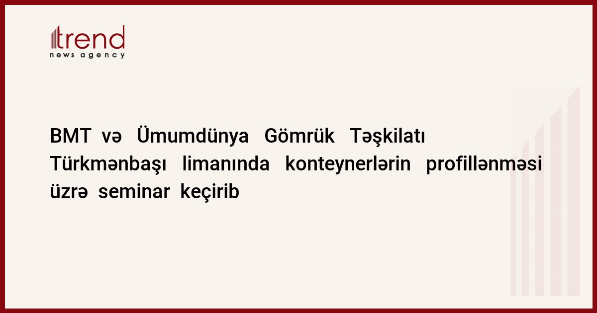 Türkmənistan , Aşqabad , 25 dekabr / Trend , müxbir E.Həsənov / Türkmənistanda Türkmənistan Seqmenti - konteyner daşımaları üzrə Qlobal Proqram (GLOG80) çərçivəsində Türkmənbaşı şəhərində konteynerlərin profillənməsi üzrə təlim proqramı başa çatıb . BMT-nin xüsusi İdarəsi Ümumdünya Gömrük Təşkilatı ilə birgə təşkilatçı qismində çıxış ediblər . Bu barədə BMT-nin narkotik maddələr və cinayət üzrə İdarəsinin (UNODC) press-relizində bildirilir .