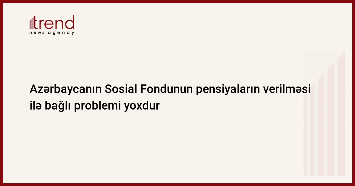 Azərbaycan Dövlət Sosial Müdafiə Fondu (DSMF) pensiyaların maliyyələşdirilməsi ilə bağlı heç bir çətinlik hiss etmir. Bu barədə Fondun sığorta pensiya siyasəti və strateji araşdırmalar departamentinin direktoru Elman Mehdiyev bildirib.