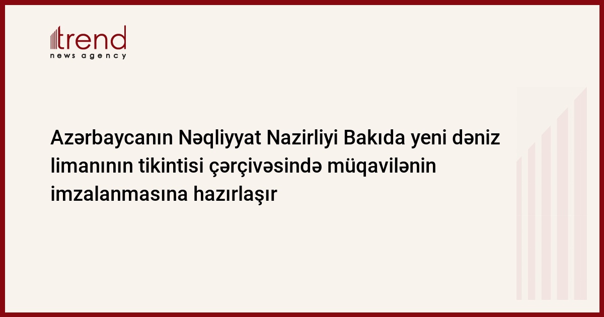 Azərbaycanın Nəqliyyat Nazirliyi yanvarın 26-27-də Ələt qəsəbəsində Bakı Beynəlxalq Dəniz Limanının layihələndirilməsinə dair tenderdə qalib olmuş Hollandiyanın Royal Haskoning şirkəti ilə müqavilə imzalamağa hazırlaşır, - Nəqliyyat Nazirliyindəki mənbə çərşənbə günü bildirib.