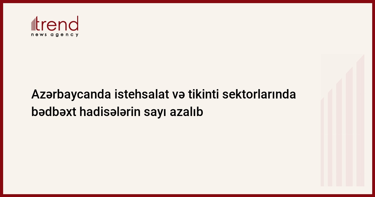 2008 - ci ildə azərbaycanda istehsalat və tikinti sektorunda bədbəxt hadisələr və ölüm hallarının sayı 2007 - ci illə müqayisədə təxminən 2 faiz azalıb, - Dövlət Əmək Müfəttişliyinin rəhbəri Nəbi Şükürlü cümə günü bildirib.