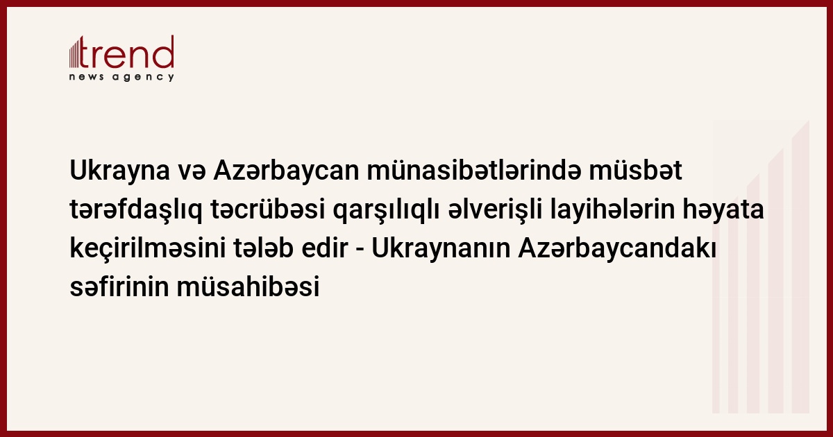 Azərbaycan, Bakı, 09 fevral / Trend / Ukraynanın Azərbaycan Respublikasındakı Fövqəladə və Səlahiyyətli səfiri Boris Klimçukun Trend İnformasiya Agentliyinə müsahibəsi