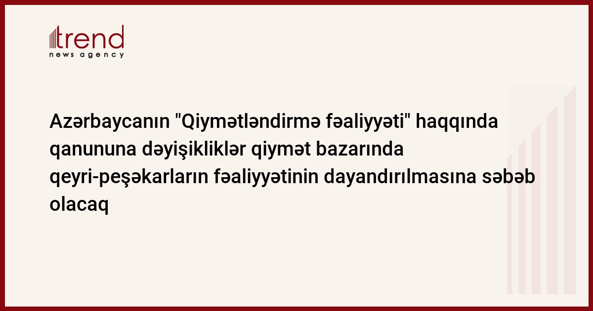 Onun sözlərinə görə qiymətləndirmə fəaliyyətinin sonrakı inkişafı qanunvericilik bazasının təkmilləşdirilməsinin tələb edir.