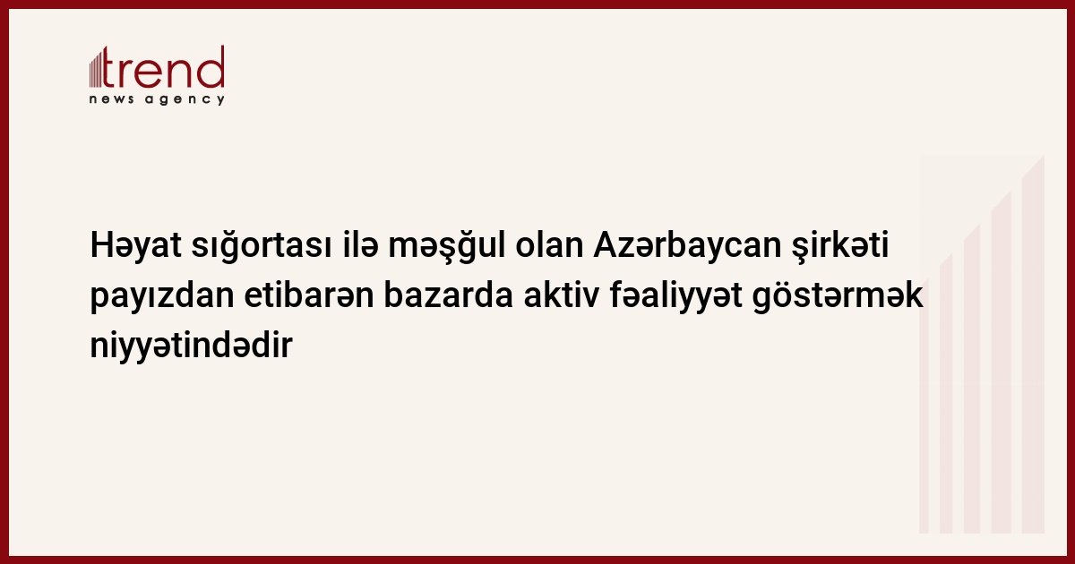 Azərbaycan, Bakı, 24 fevral / Trend , müxbir Ü. İsmayılova / Azərbaycanın həyat sığortası ilə məşğul olan yeganə şirkəti "Atəşgah Həyat" payızdan etibarən bazarda kök salmaq niyyətindədir, - çərşənbə günü sığorta şirkətinin idarəetmə sədri Azər Əliyev bildirib.