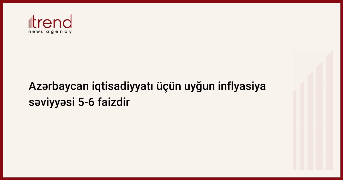 Azərbaycan, Bakı, 27 fevral / Trend , müxbir N.İsmayılova / "Azərbaycan iqtisadiyyatı üçün uyğun inflyasiya səviyyəsi 5-6 faizdir", - cümə günü Azərbaycan Milli Bankının (AMB) idarə heyətinin sədri Elman Rüstəmov deyib.