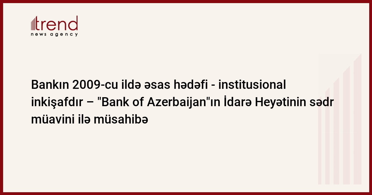 "Bank of Azerbaijan"ın satış üzrə İdarə Heyətinin sədr müavini Kamran Heydərov trend.az-a müsahibəsində bankın yaxın gələcək üçün planları və 2009-cu ildə bankın inkişaf proqramı haqda məlumat verib.