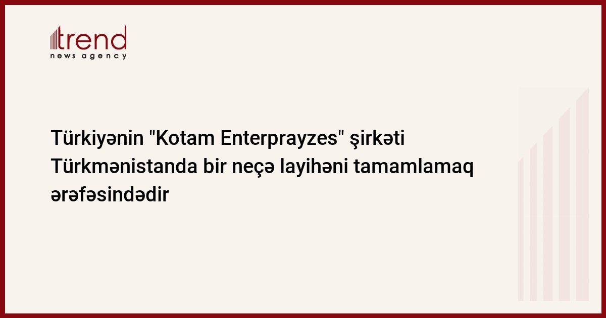 Türkiyənin "Kotam Enterprayzes" şirkəti bir neçə vacib obyekti Türkmənistanda istifadəyə verməyə hazırlaşır. Buraya tibbi və kosmetik pambıq ihstehsal edən fabrik, "Ene mehri" doğuş mərkəzi və Modalr evi daxildir.
