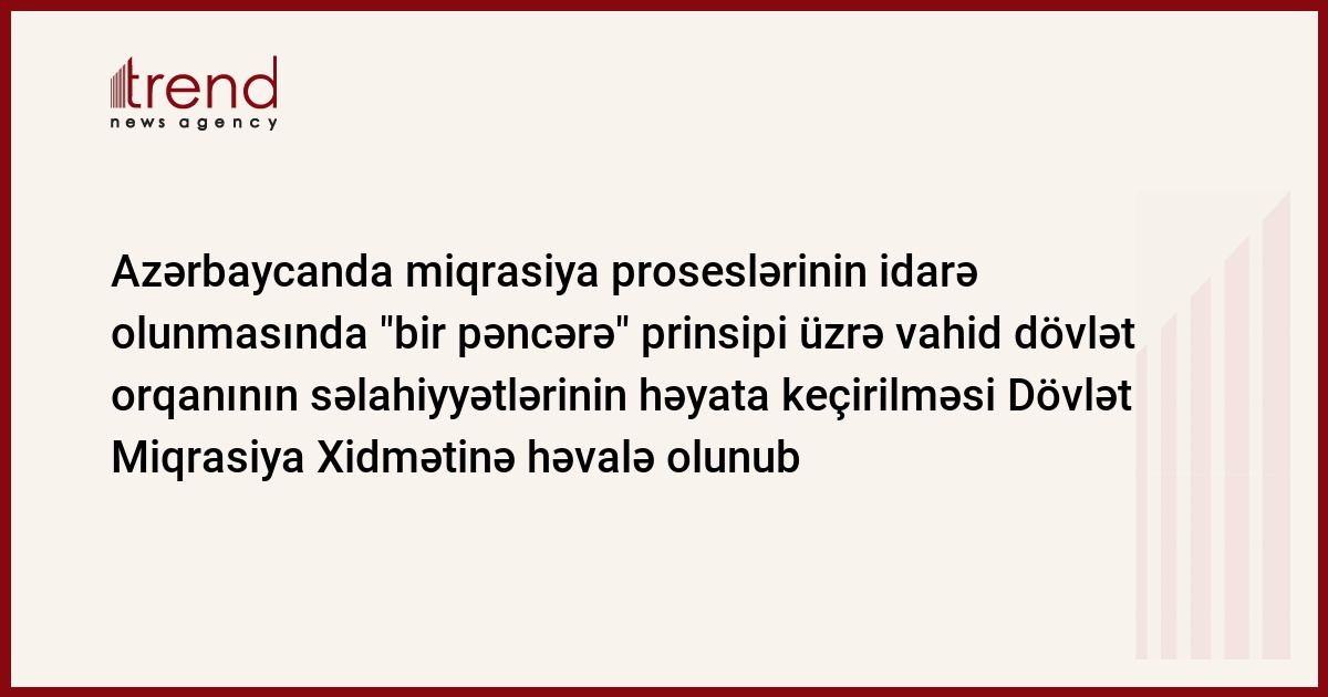 Fərmana görə, miqrasiya proseslərinin idarə olunmasında "bir pəncərə" prinsipi üzrə vahid dövlət orqanının səlahiyyətlərinin həyata keçirilməsi Dövlət Miqrasiya Xidmətinə həvalə olunub.