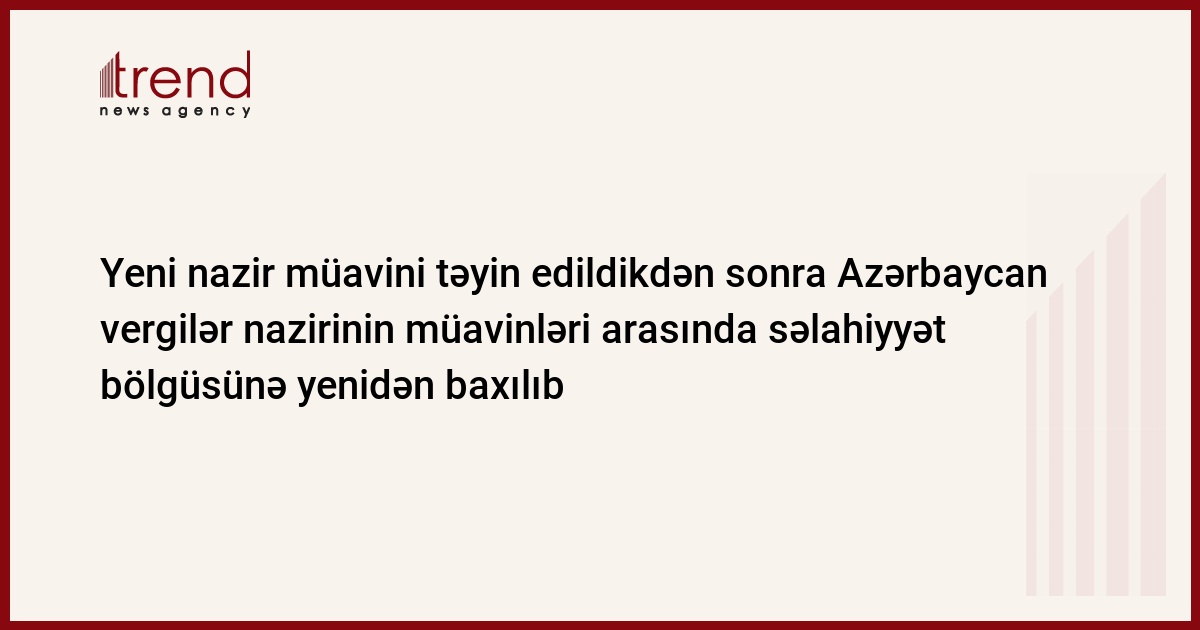 "Əvvəllər xüsusi rejimli vergi xidməti departamentinə başçılıq etmiş Sahir Məmmədxanovun yeni nazir müavini təyin edilməsindən sonra Azərbaycan vergilər nazirinin müavinləri arasında səlahiyyət bölgüsünə yenidən baxılıb", - cümə axşamı qurumdan deyilib.