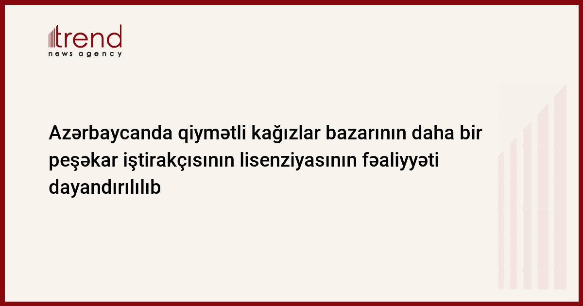 Azərbaycanda Qiymətli Kağızlar üzrə Dövlət komitəsi (QKDK) tərəfindən 2007-ci ilin oktyabrın 19-da təsis edilən qiymətli kağızlar bazarının peşəkar iştirakçısı olan Iron Investments Azerbaijan MMC-nin "Qiymətli kağızlar bazarının peşəkar iştirakçılarının hesabatlıq" qaydalarının tələblərinə əməl etməməsi səbəbindən lisenziyasının fəaliyyəti dayandırılıb, - QKDK-dan bildirilib.