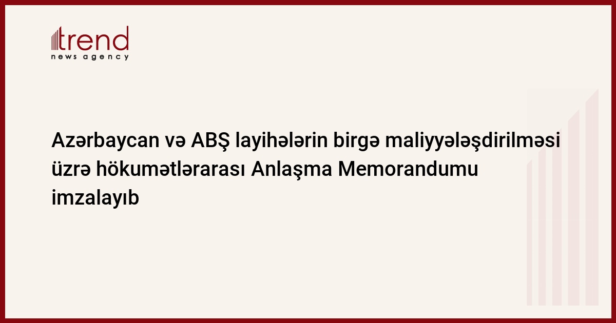 "Azərbaycan Maliyyə Nazirliyi ABŞ-la "Azərbaycanda Seçilmiş Amerika Hökuməti Yardım Proqramlarının Birgə Maliyyələşdirilməsi üzrə Anlaşma Memorandumu" imzalayıb", - nazirliyin çərşənbə günü yayımış məlumatında deyilir.