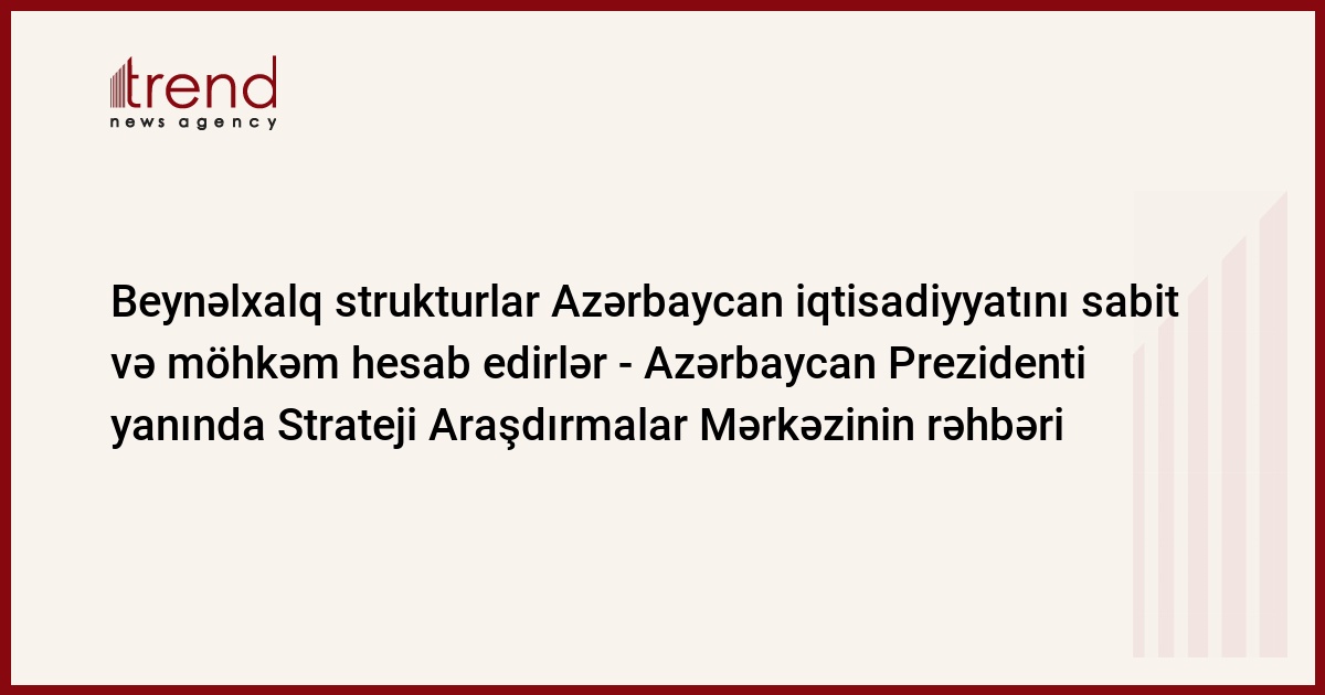 "Beynəlxalq strukturlar Azərbaycan iqtisadiyyatını sabit və möhkəm hesab edirlər", - Azərbaycan Prezidenti yanında Strateji Araşdırmalar Mərkəzinin rəhbəri Elxan Nuriyev deyib.