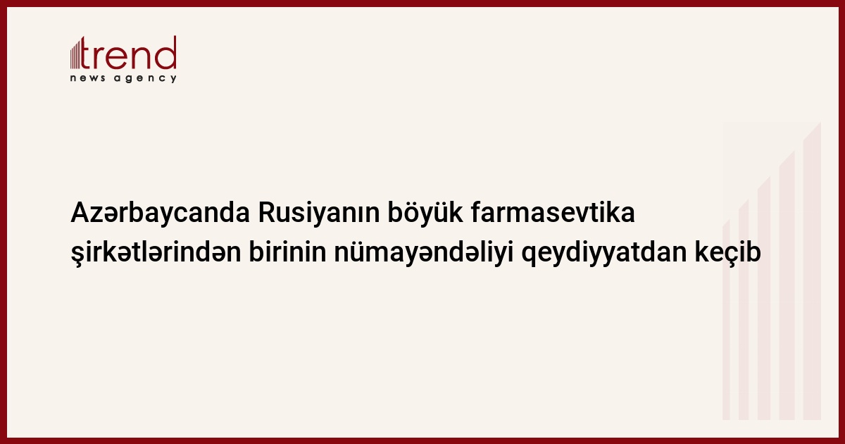 "Azərbaycanda yeni farmasevtika şirkəti "Nijni Novqorod kimya-farmasevtika zavodu" ASC-nin nümayəndəliyi ("Nijfarm") qeydiyyatdan keçib", - Azərbaycan Vergilər Nazirliyinin rəsmi saytının "vahid pəncərə" bölməsində yerləşdirilən məlumatda deyilir.