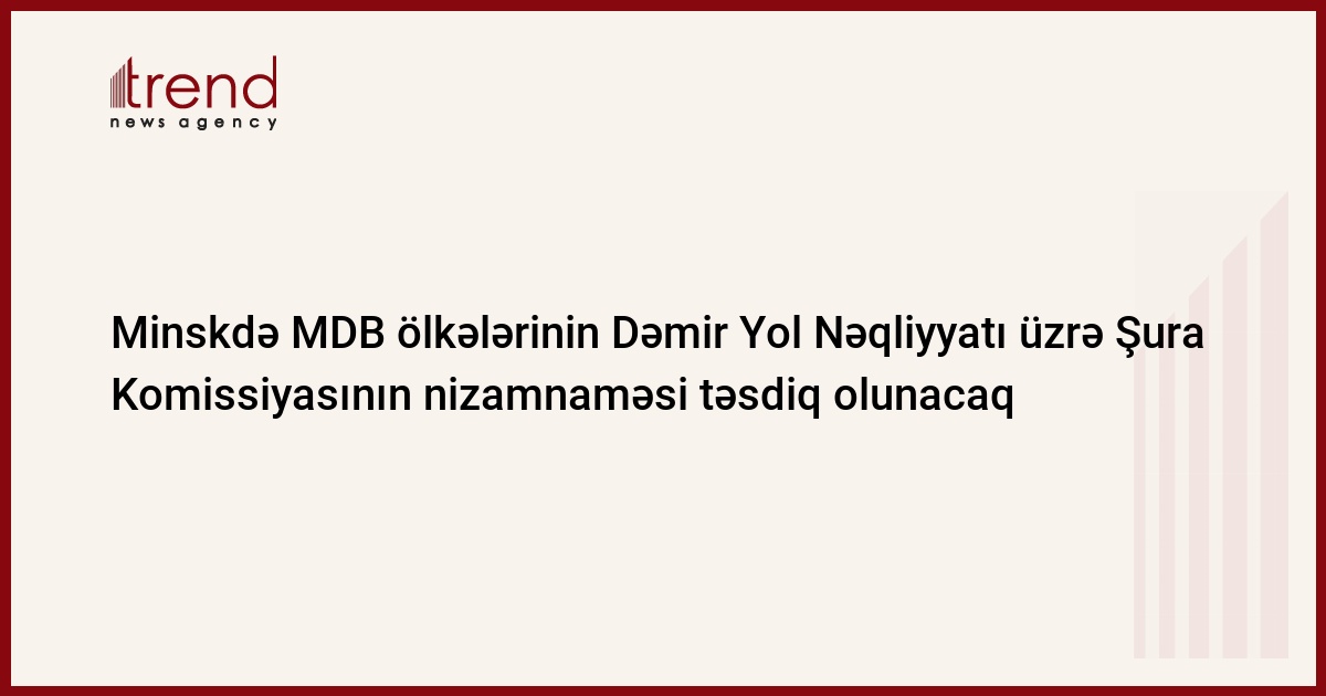 21-22 may tarixlərində Minskdə (Belarus) keçiriləcək MDB ölkələrinin Dəmir Yol Nəqliyyatı üzrə Şurasının toplantısında islahat və struktur dəyişiklikləri məsələləri üzrə MDB ölkələri, Latviya, Litva və Estoniyanın Dəmir Yol Nəqliyyatı üzrə Şura Komissiyasının nizamnaməsi təsdiq olunacaq, MDB İcraiyyə Komitəsinin verdiyi məlumatda bildirilib.