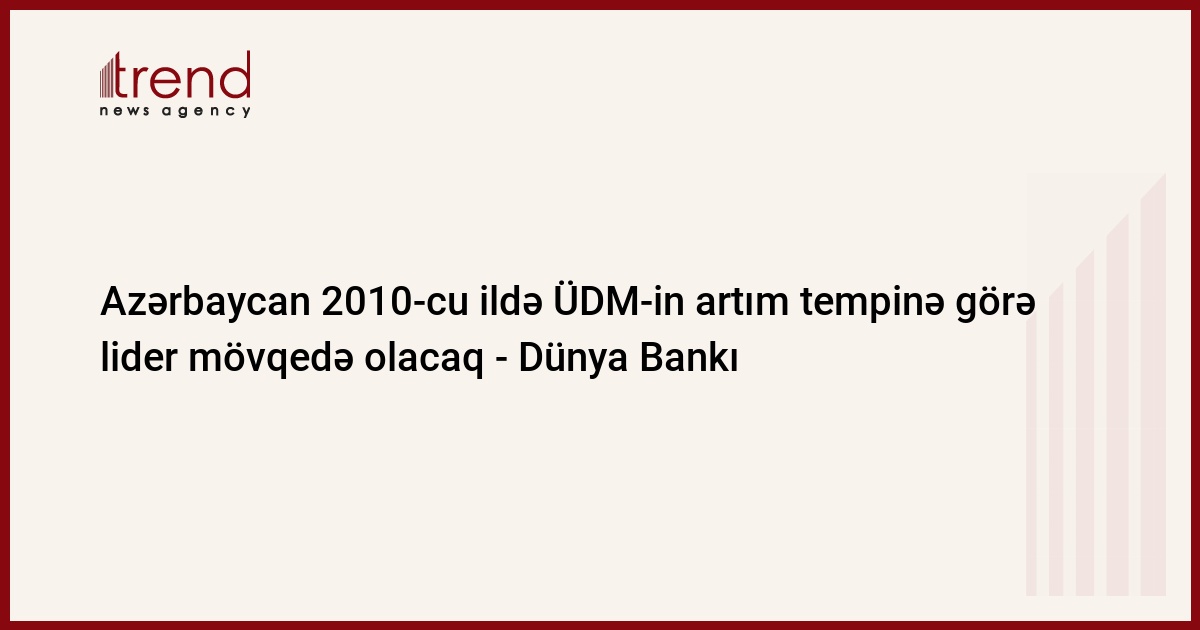 Dünya Bankının (DB) proqnozlarına görə, 2009-cu ildə Azərbaycanda ÜDM-in artım tempinin 3,3 faiz olacağı gözlənilir və ölkə Özbəkistandan (4,5 faiz artım) sonra Avropa və Mərkəzi Asiya ölkələri arasında ikinci yeri tutacaq. Bu barədə bankın "2009-cu ildə dünya iqtisadiyyatı inkişafının maliyyə aspektləri" məruzəsində deyilir.