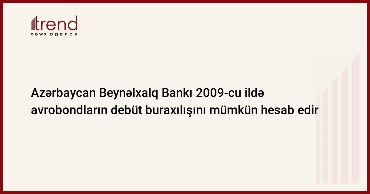 Azərbaycan Beynəlxalq Bankı 2009-cu ildə 200 milyon dollar həcmində avrobondların debüt buraxılışını həyata keçirə bilər. Bu barədə cümə günü ABB-nın İdarə Heyətinin sədri Vaqif Əkbərov bildirib.