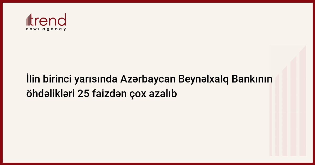 "İlin birinci yarısında Azərbaycan Beynəlxalq Bankının (ABB) iyulun 1-nə olan aktivləri 3,47 milyard manat təşkil edib ki, bu da yanvarın 1-nə olan göstəricidən 20,6 faiz azdır", - bankın bazar ertəsi yayılan məlumatında deyilir.