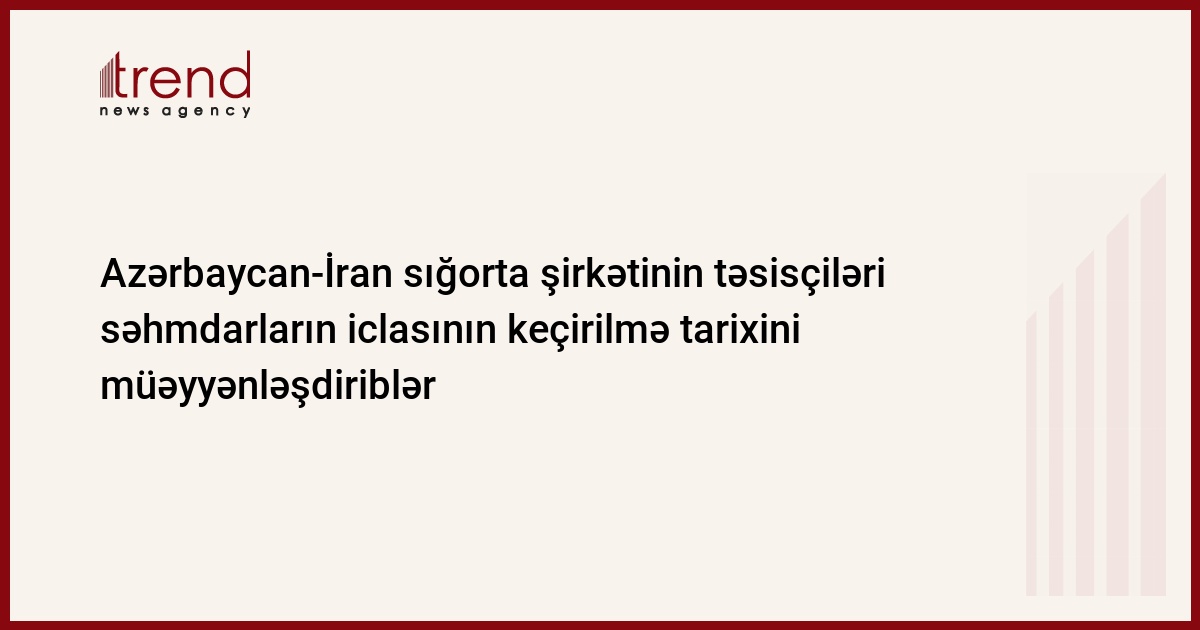 2008-ci ilin fevralında ləğv edilmiş "Azer-Asia" Azərbaycan-İran sığorta şirkətininin təsisçiləri səhmdarların iclasının keçirilmə tarixini müəyyənləşdiriblər. İclasda idarə heyətinin buraxılması və təsviyyə komissiyasının yaradılmasının müzakirə edilməsi planlaşdırlır. Bu barədə şirkətin məlumatında deyilir.