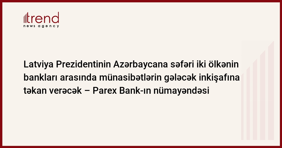 "Latviya Prezidenti Valdis Zatlersin Azərbaycana rəsmi səfəri Azərbaycan və Latviya bankları arasında qarşılıqlı əlaqələrin gələcək inkişafına təkan verəcək", - Latviyanın Bank Assosiasiyasının nümayəndəsi və Parex Bank-ın Azərbaycandakı nümayəndəliyinin başçısı Andreys Krivans bildirib.