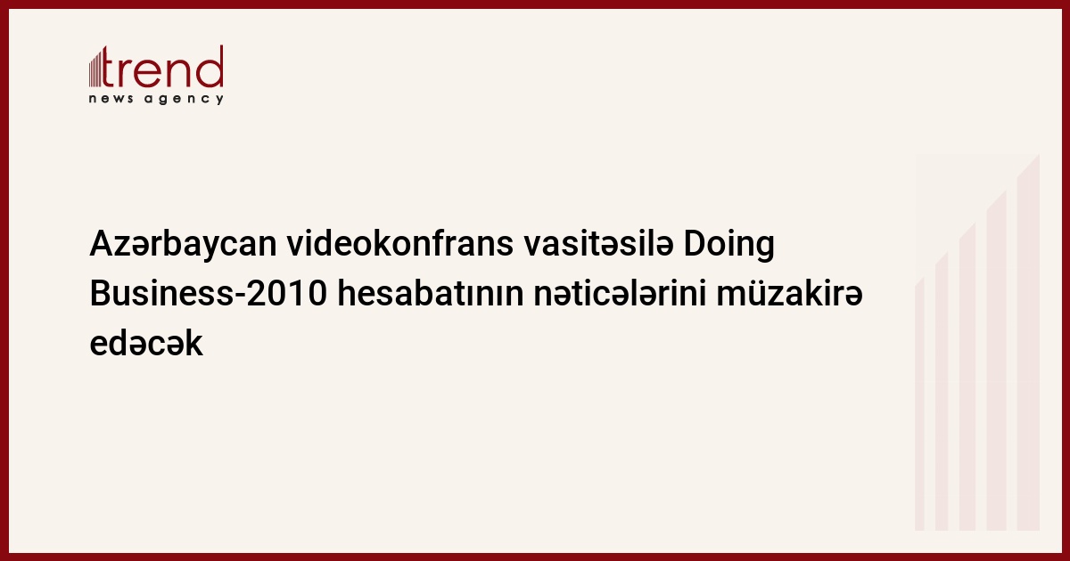 Dünya Bankı (DB) və Beynəlxalq Maliyyə Korporasiyasının (BMK) "Doing Business-2010: islahatlar necə keçirilir" birgə hesabatının nəticələrini elan etmək üçün sentyabrın 10-da Bakıda onun müəlliflərinin iştirakı ilə videokonfrans keçiriləcək. Bu barədə cümə günü BMK-nın Bakı ofisindən məlumat verilib.