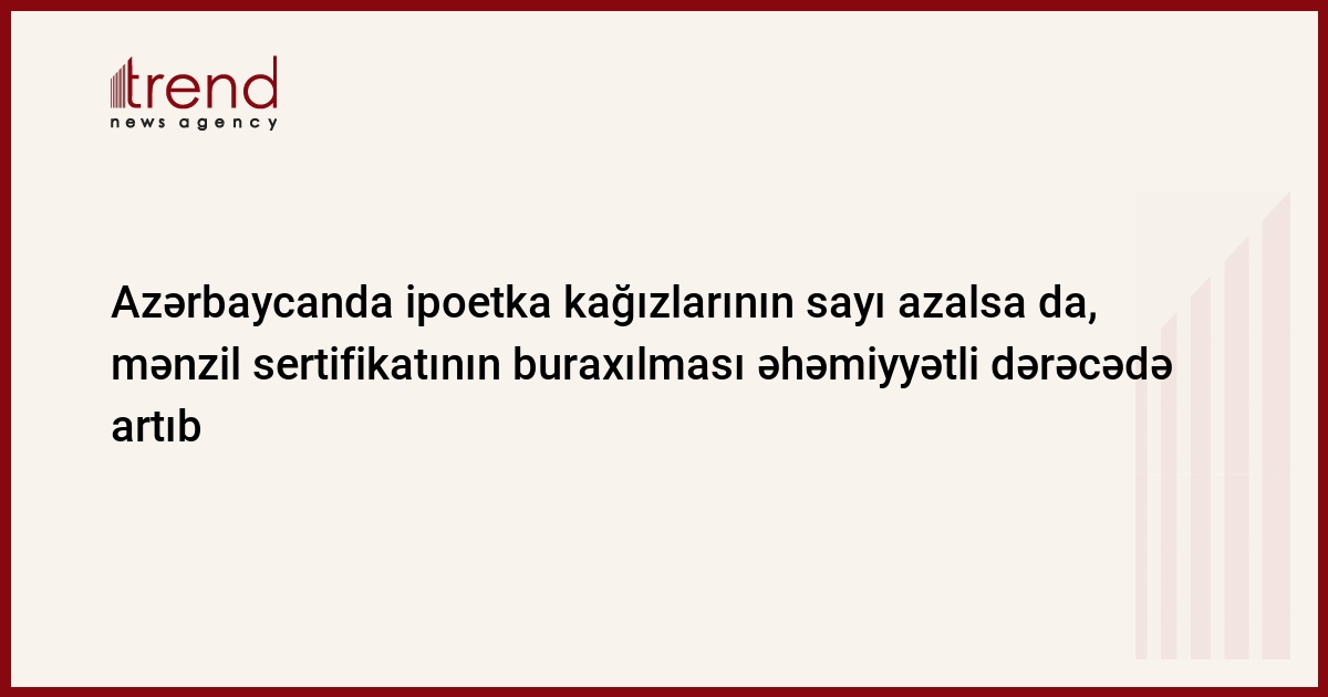 "İpoteka kağızları bazarının azalması il ərzində 65,9 faiz təşkil edib", - məlumatda deyilir.