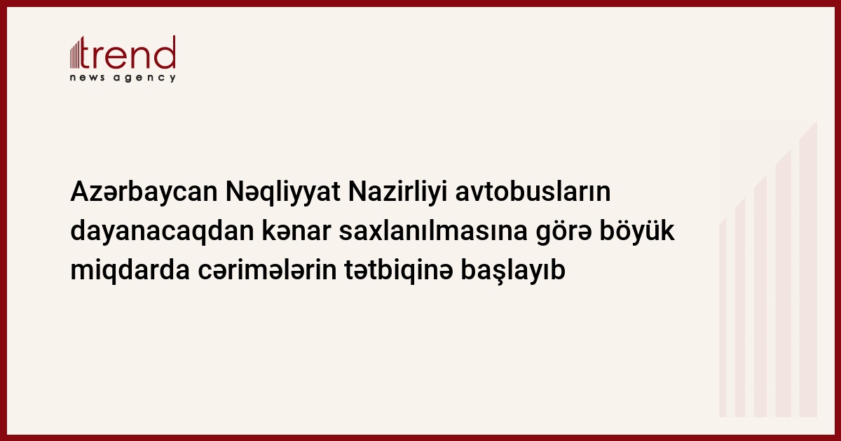 Azərbaycan Nəqliyyat Nazirliyi ictimai nəqliyyatın (avtobusların) dayanacaqdan kənarda saxlanılmasına görə böyük miqdarda (200-dən 1000 manata kimi) cərimələrin tətbiqinə başlayıb. Bu barədə Nəqliyyat Nazirliyi adından xəbərdarlıq bir çox avtobuslarda var.