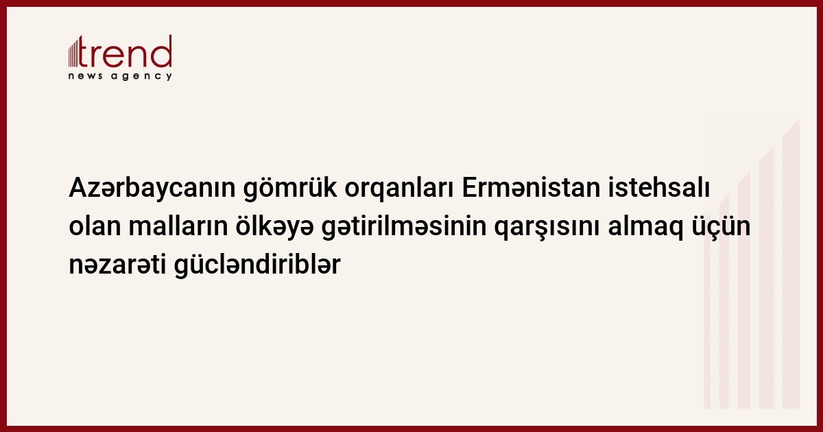 Ermənistan istehsalı olan məhsulların ölkəyə gətirilməsinin qarşısını almaq məqsədilə DGK Tovuz, Xaçmaz və Balakən rayonlarındakı nəzarət-buraxılış məntəqələrində nəzarəti gücləndirib, Dövlət Komitəsindən deyilib.