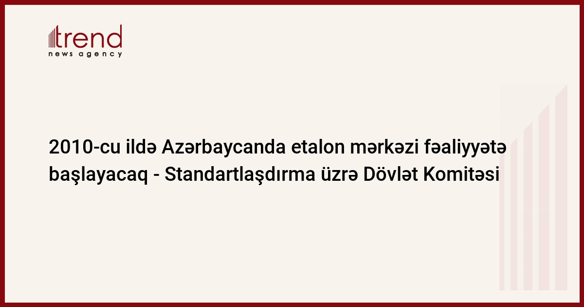 Etalon mərkəzi Azərbaycanda 2010-cu ilin birinci rübündə istismara veriləcək, Dövlət Komitəsinin Texniki tənzimlənmə və standartlaşdırma şöbəsinin müdiri Sabiq Abdullayev deyib.