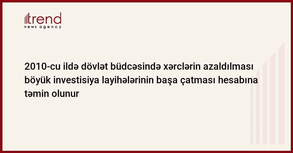 2010-cu ildə dövlət büdcəsində xərclərin azaldılması daha əvvəl ölkədə həyata keçirilən böyük investisiya layihələrinin başa çatması hesabına təmin olunur, çərşənbə günü maliyyə naziri Samir Şərifov deyib.