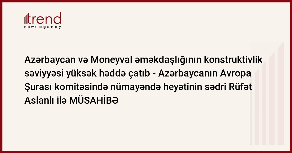Azərbaycanın çirkli pulların yuyulmasına və terrorçuluğun maliyyələşdirilməsinə qarşı tədbirlərin qiymətləndirilməsi üzrə Avropa Şurasının Ekspertlər Komitəsində (MONEYVAL) nümayəndə heyətinin və Qiymətli Kağızlar üzrə Dövlət Komitəsinin sədri Rüfət Aslanlının Trend -a müsahibəsi