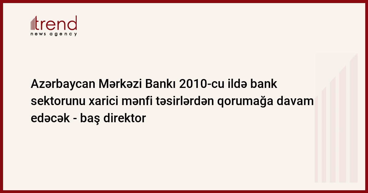 Onun sözlərinə görə, AMB 2010-cu ildə bankların faiz dərəcələrinin azaldılmasına və manatın stabilliyinin saxlanmasına yönəlmiş siyasət yürüdəcək.