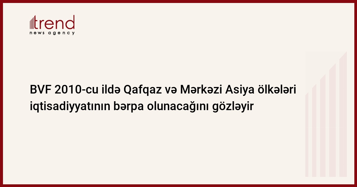 2009-cu ildə dünya maliyyə böhranı ilə əlaqədar olaraq bir sıra zədələrlə üzləşən Qafqaz və Mərkəzi Asiya ölkələri regionunda vəziyyət Beynəlxalq Valyuta Fondunun (BVF) proqnozlarına əsasən 2010-cu ildə yaxşılaşacaq. Bu barədə BVF-in Azərbaycan üzrə missiyasının rəhbəri Ninke Omes çərşənbə günü Bakıda Azərbaycan-Amerika Ticarət-Sənaye Palatasının (AMCHAM) üzvləri üçün təqdimat zamanı deyib.