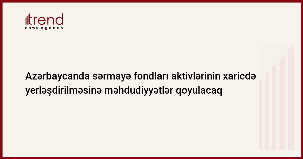 Azərbaycan xarici bazarlarda yerləşdiriləcək sərmayə fondları aktivlərinin strukturunda məhdudiyyətlər qoymaq fikrindədir. Bunu Azərbaycanın Qiymətli Kağızlar üzrə Dövlət Komitəsinin sədri Rüfət Aslanlı deyib.