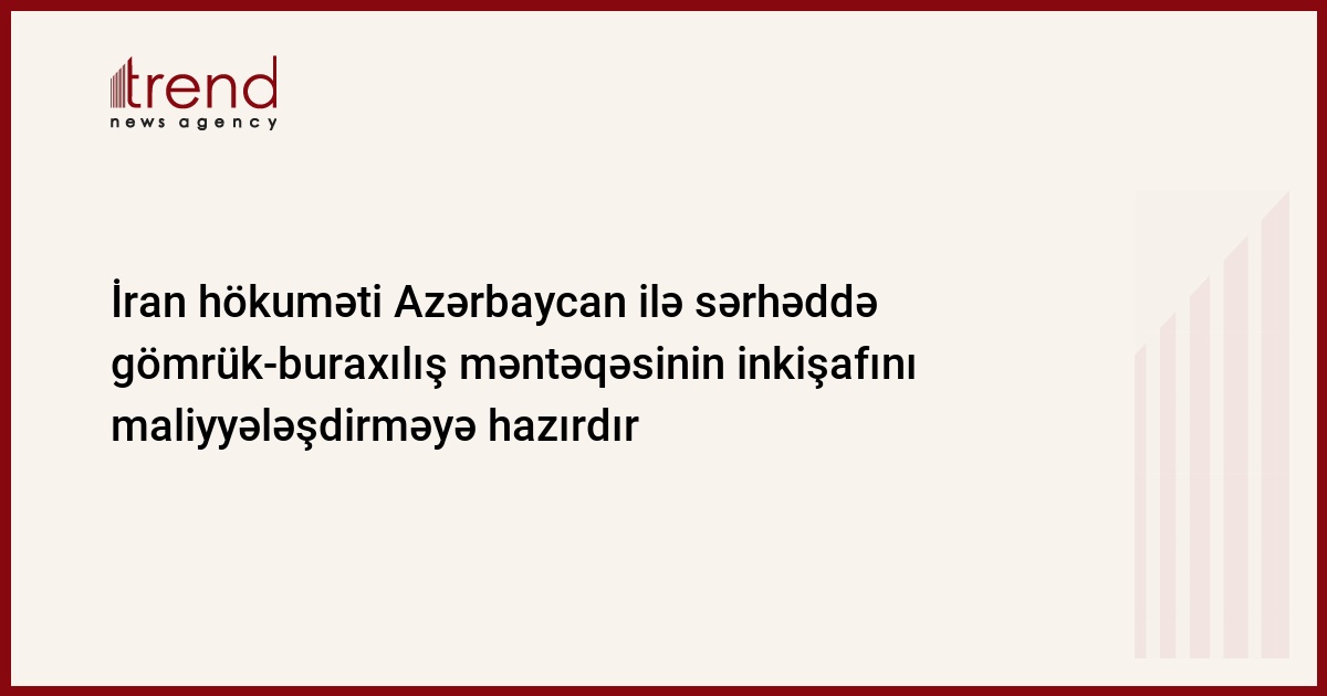 İran hökuməti Astarada sərhəd-buraxılış məntəqəsinin iqtisadi inkişafı layihəsinin gündəliyə çıxarılması barədə qərar qəbul edib. Bu barədə İranın nəqliyyat və yükdaşımalar üzrə Təşkilatının proqramlaşdırılma üzrə rəhbərinin müavini Kamran Rəhimov İranın "FARS" agentliyinə Astarada sərhəd-buraxılış məntəqəsinə baxış zamanı müsahibəsində bildirib.