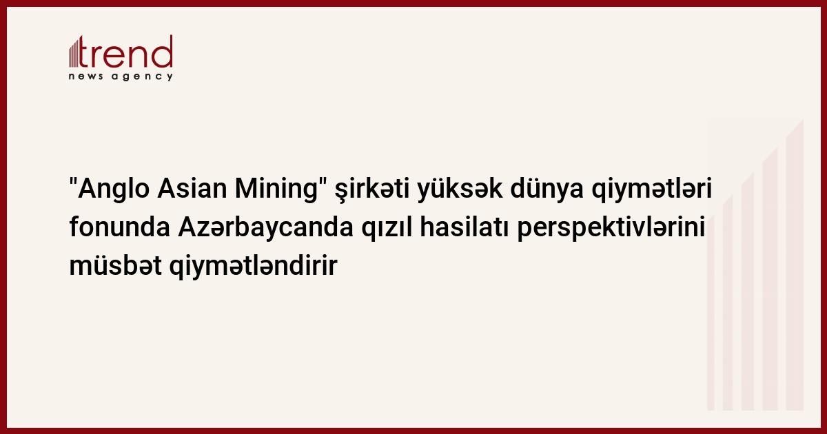 "Anglo Asian Mining PLC" şirkəti qızılın yüksək qiymətinin qorunması hesabına kapitallaşmaya ümid edir. Bu barədə şirkətin məlumatında deyilir.