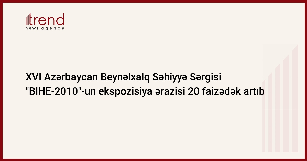 XVI Azərbaycan Beynəlxalq Səhiyyə Sərgisi "BIHE-2010"-un ekspozisiya ərazisi 20 faizədək artıb. Bu barədə "BIHE-2010" sərgisinin açılışına həsr edilən mətbuat konfransında "Iteca Caspian LLC" şirkətinin icraçı direktoru Fərid Məmmədov deyib.