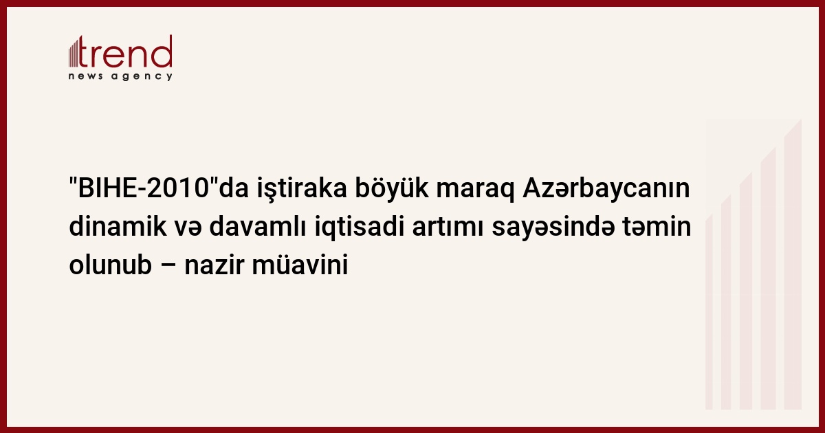 XVI Azərbaycan Beynəlxalq Səhiyyə Sərgisi "BIHE-2010"da iştitaka maraq Azərbaycanın dinamik və davamlı iqtisadi artımı sayəsində təmin olunub. Bu barədə Azərbaycan səhiyyə nazirinin müavini Elsevər Ağayev sərginin açılış mərasimində deyib.