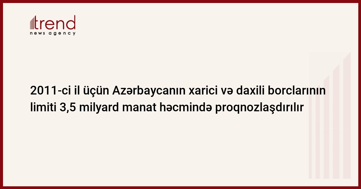 Azərbaycan Milli Məclisinə təqdim olunmuş 2011-cil ilin Dövlət Büdcəsində xarici borcların limiti 2,3 milyard manat həcmində müəyyən edilib. Son iki ildə hökumət xarici borcun həddini 2,5 milyard manat səviyyəsində saxlayır. 2007-ci ildə isə bu göstərici 1,2 milyard manat səviyyəsində idi.
